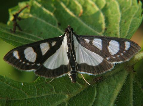 前翅に3つの白紋と1本の白紋列、後翅に1つの大きな白紋